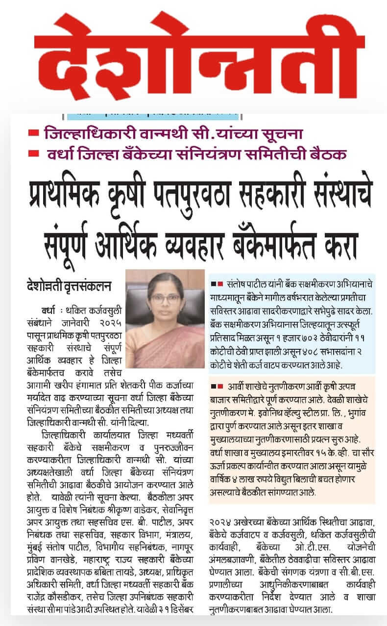 दि.वर्धा जिल्हा मध्यवर्ती सहकारी बँक मर्यादित,वर्धा