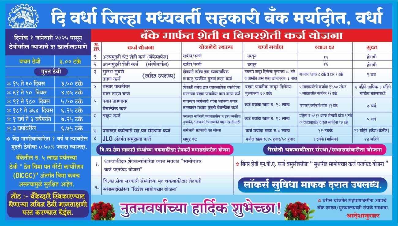 दि.०१ जानेवारी २०२५ पासून बचत व मुदत ठेवीवरील व्याजाचे दर खालीलप्रमाणे.